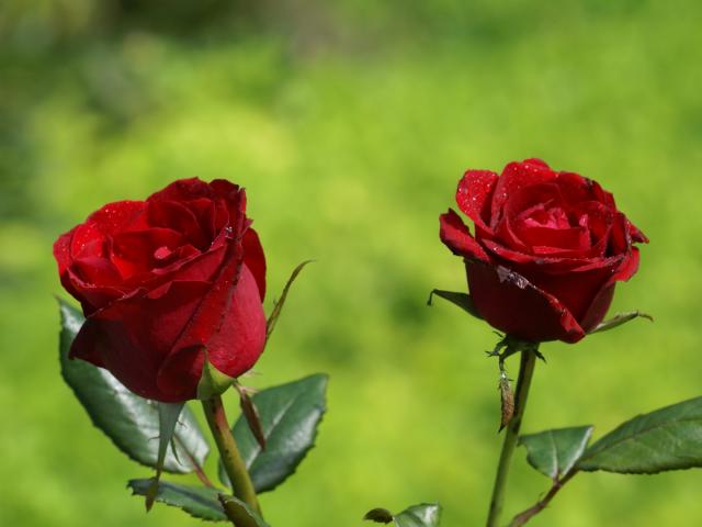 Wallpaper Two red roses on a background of grass on a sunny day