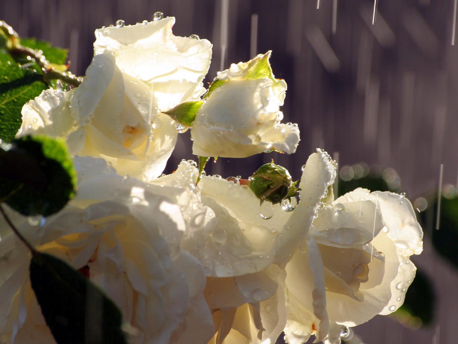 Wallpaper White roses in the rain