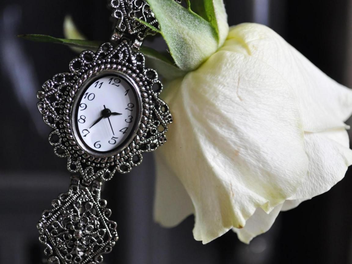Wallpaper White rose and clock