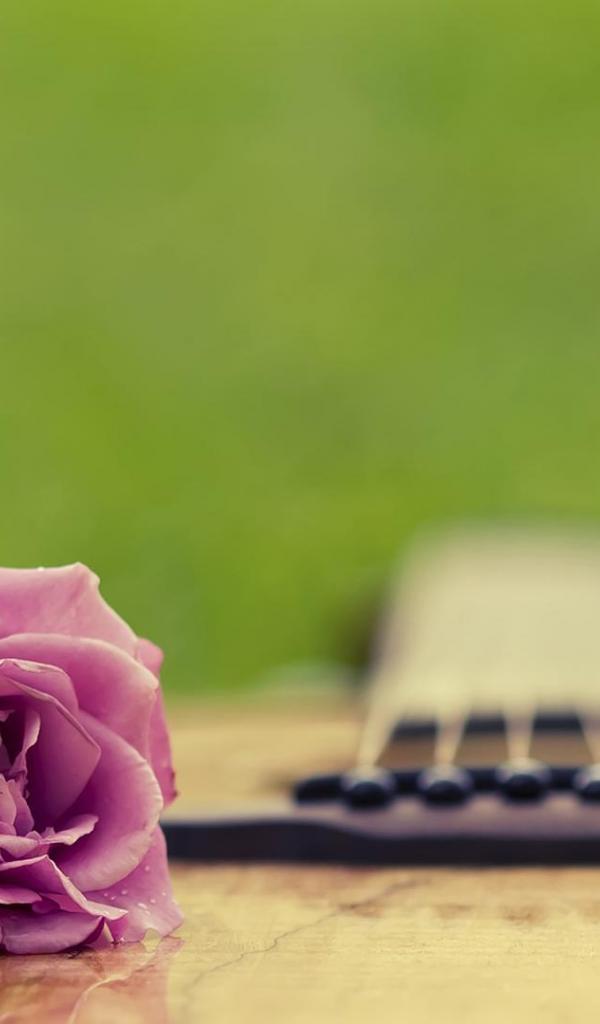 Wallpaper Purple rose on guitar