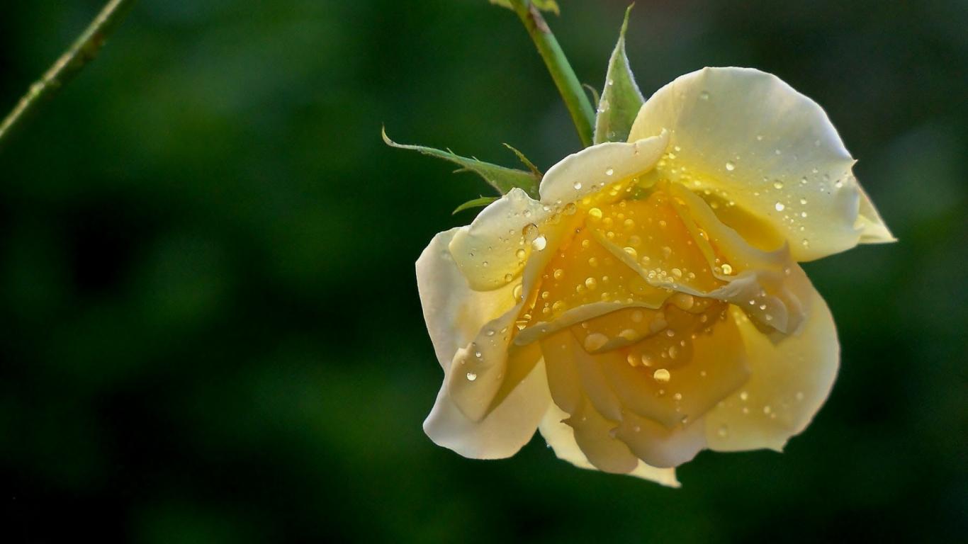 Wallpaper Wet yellow rose on a green background