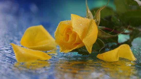 Wallpaper Yellow rose in water
