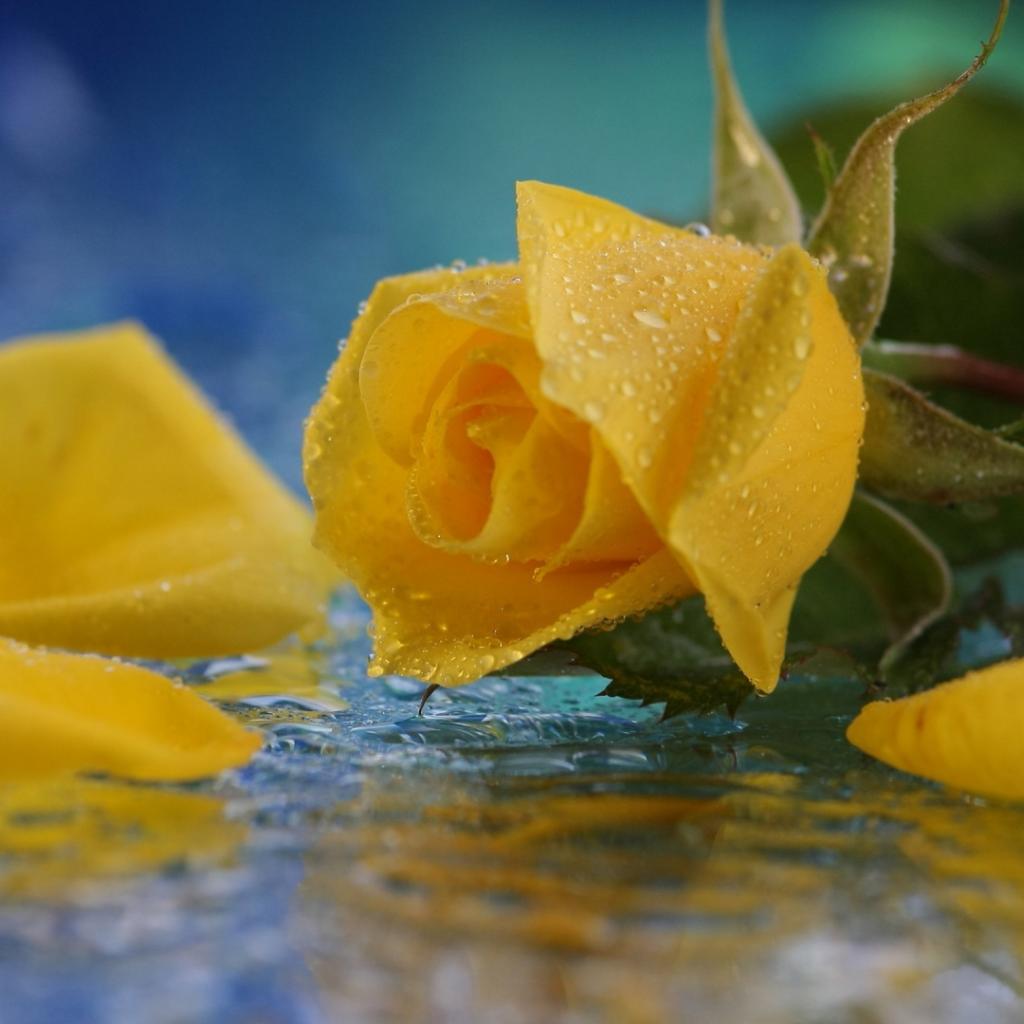 Wallpaper Yellow rose in water