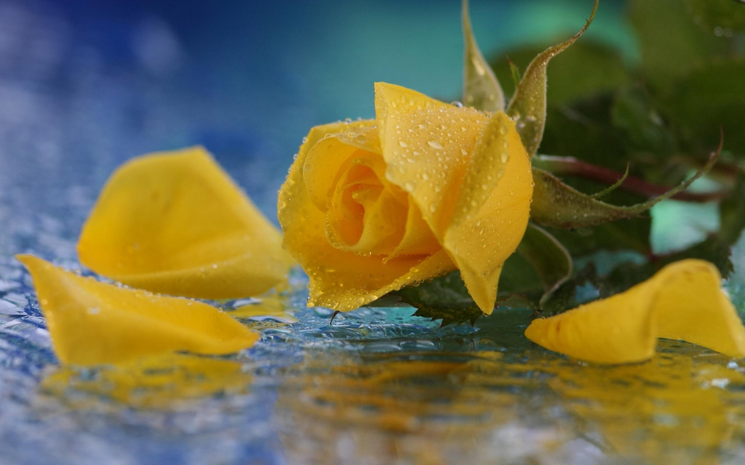 Wallpaper Yellow rose in water