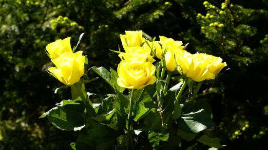 Wallpaper Yellow roses on a background of trees