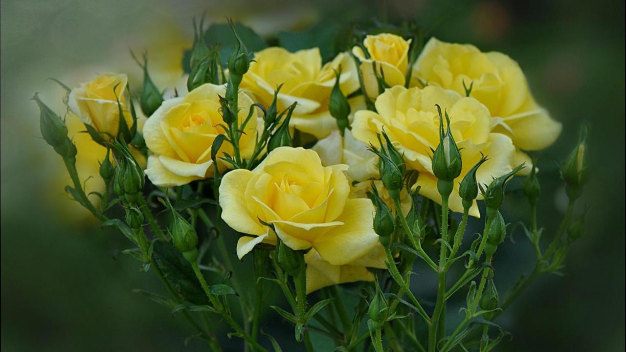 Wallpaper Yellow roses are blooming in the garden