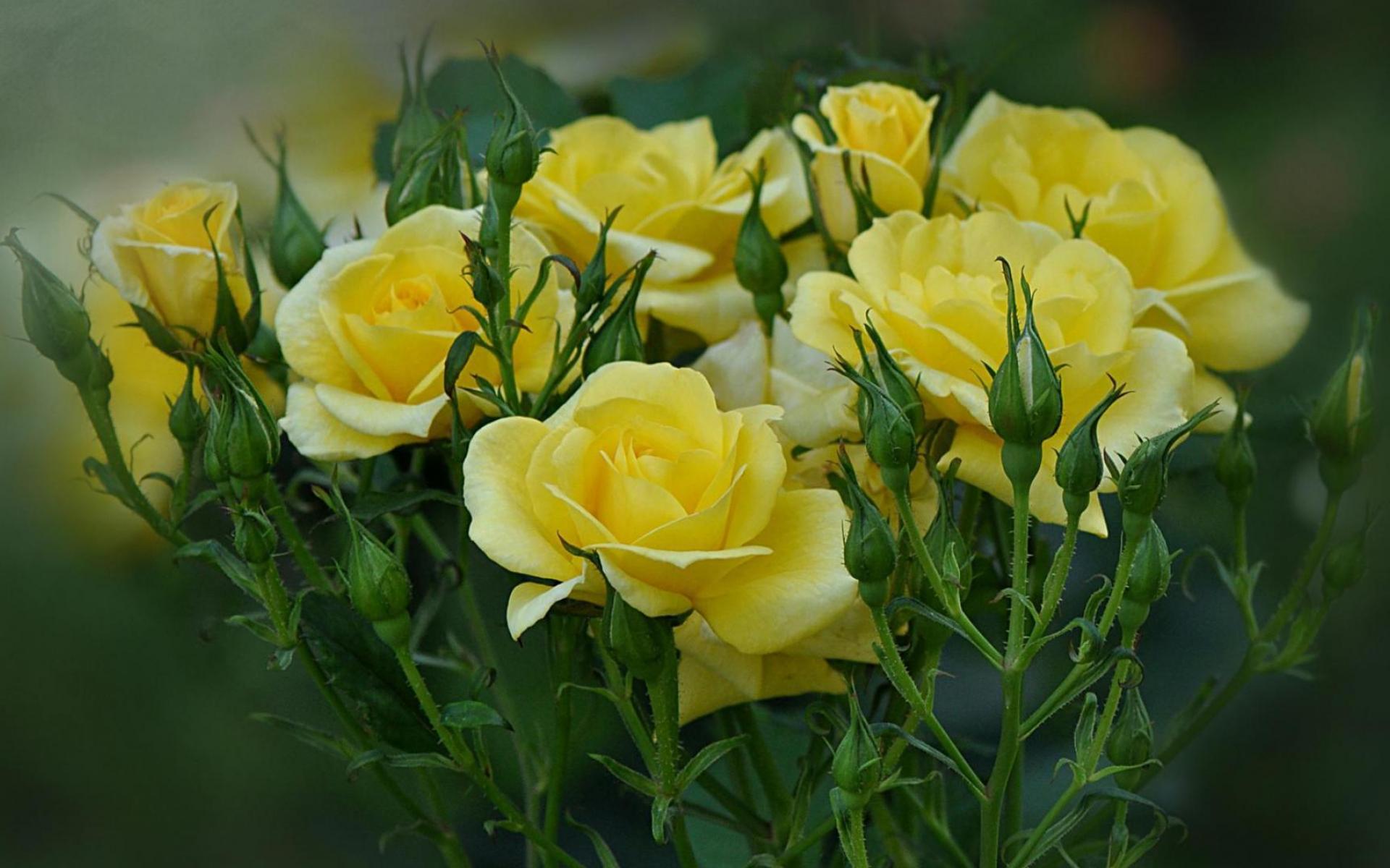 Wallpaper Yellow roses are blooming in the garden