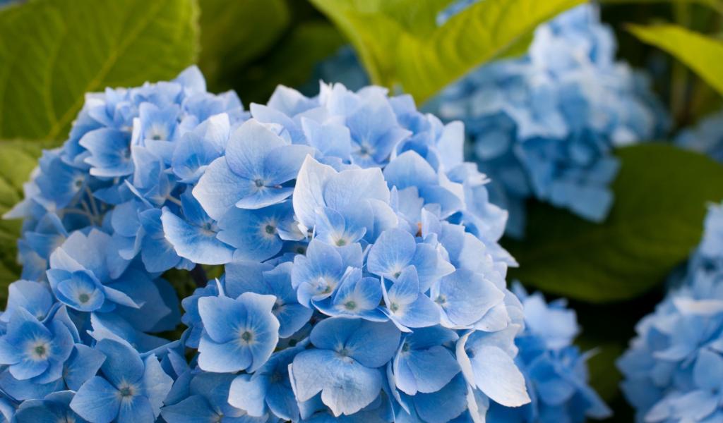 Wallpaper Blue flowers and green leaves
