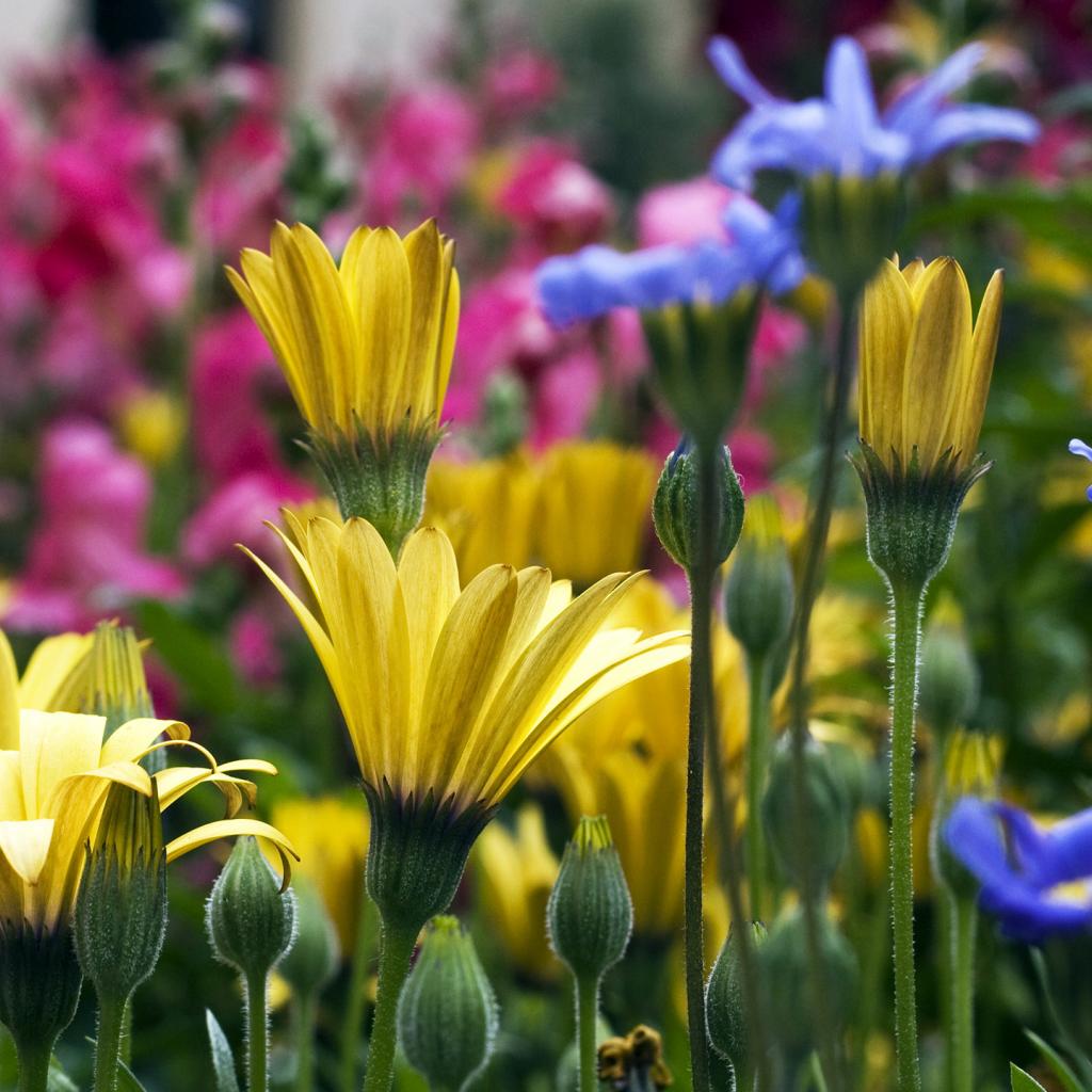 Wallpaper Yellow blue and pink flowers