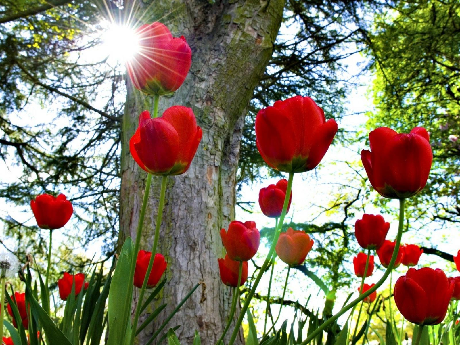 Wallpaper Red tulips under the sun