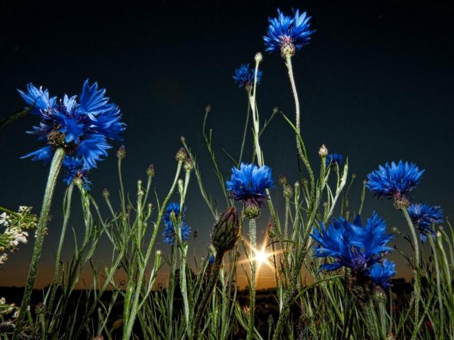 Wallpaper Beautiful cornflowers on a bed in the garden