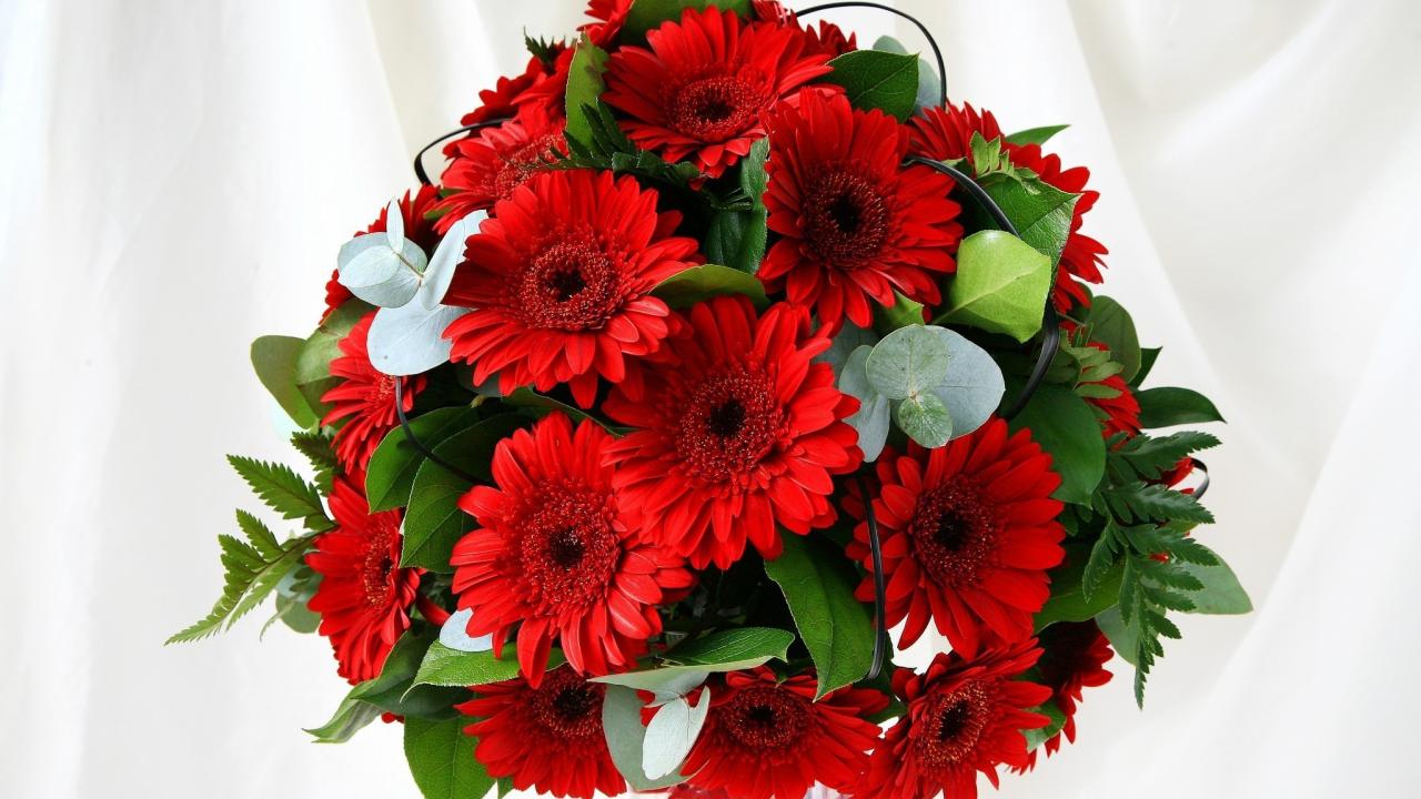Wallpaper Leaves, white bachground, bouquet, gerber