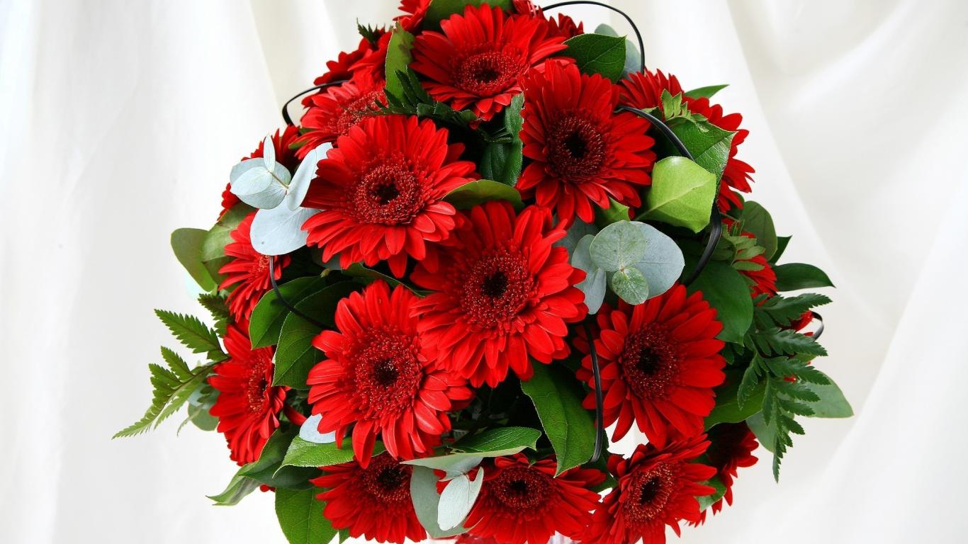 Wallpaper Leaves, white bachground, bouquet, gerber