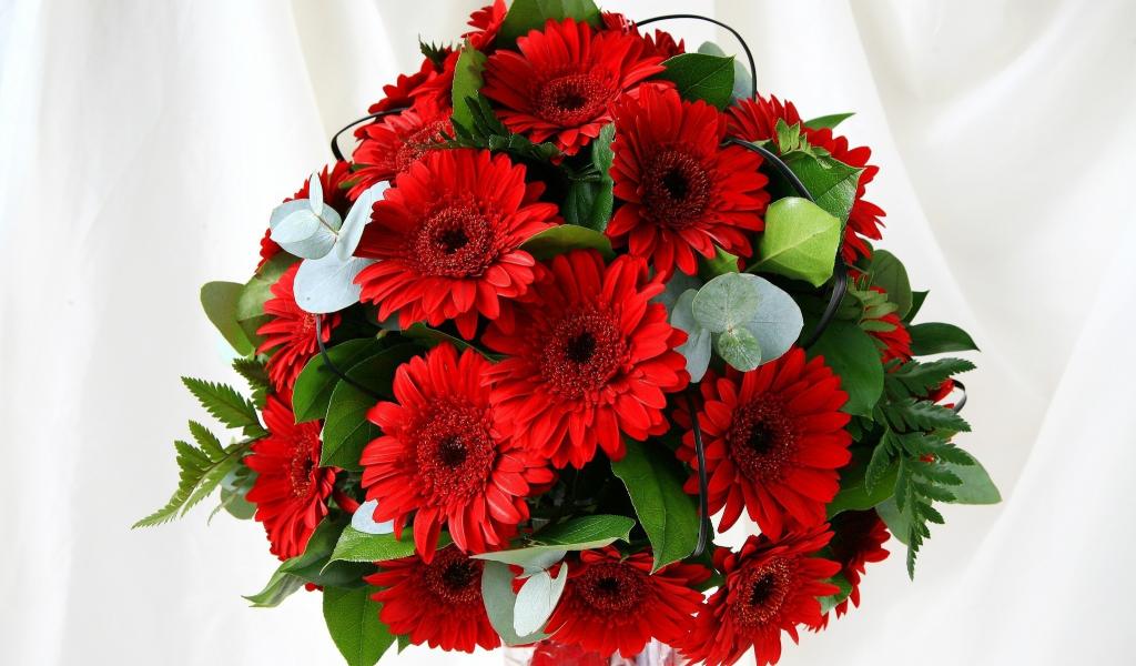 Wallpaper Leaves, white bachground, bouquet, gerber