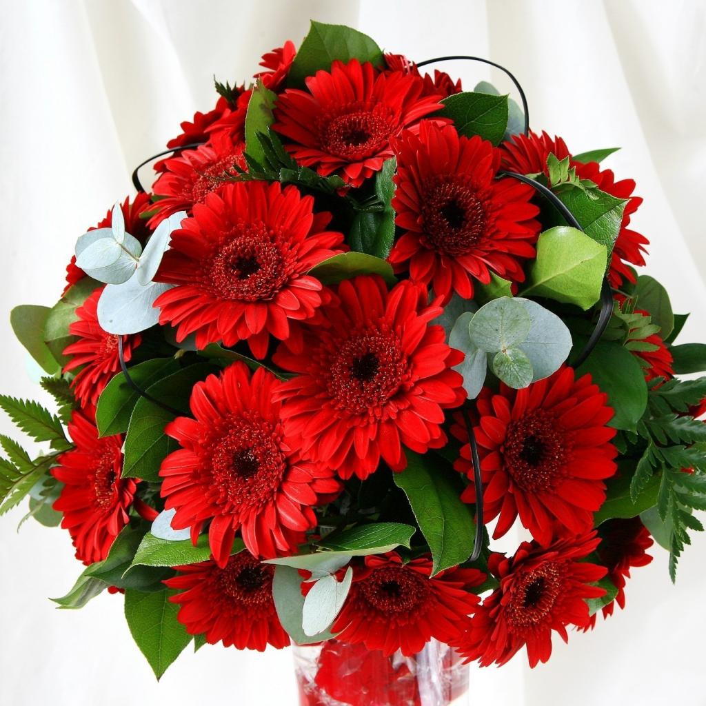 Wallpaper Leaves, white bachground, bouquet, gerber