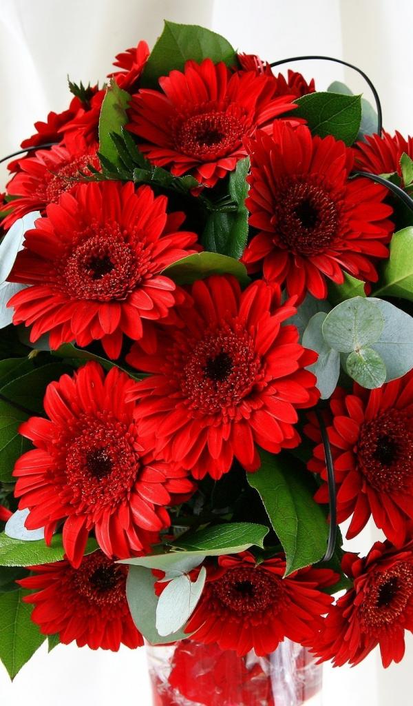 Wallpaper Leaves, white bachground, bouquet, gerber