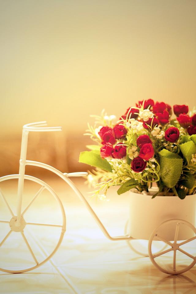 Wallpaper Bicycle, Bouquet of roses, composition