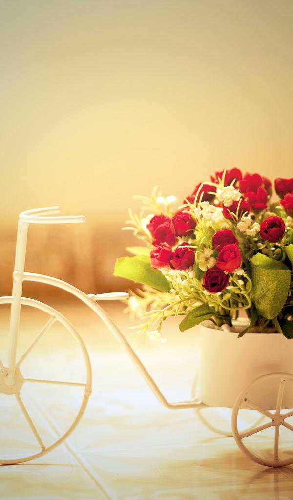 Wallpaper Bicycle, Bouquet of roses, composition