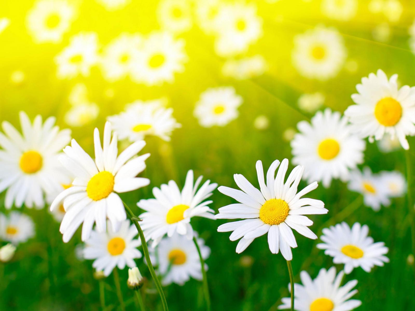 Wallpaper Daisies, White daisies, Summertime, Cloudy sky, July