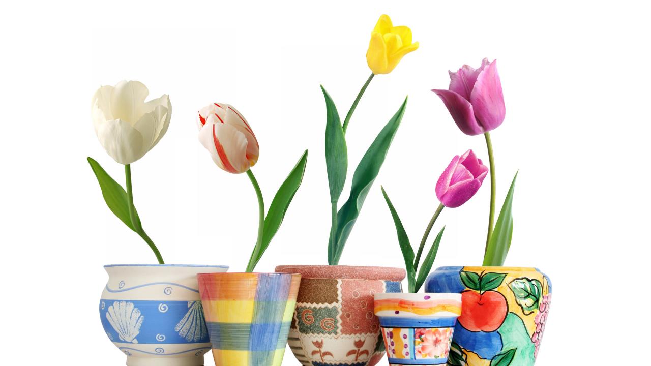 Wallpaper Tulips in pots