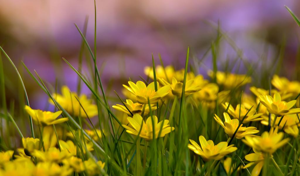 Wallpaper Yellow flowers in a grass