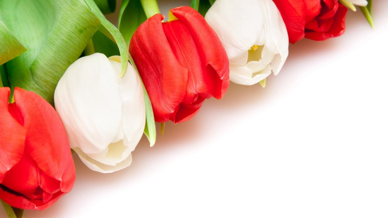 Wallpaper White and red tulips