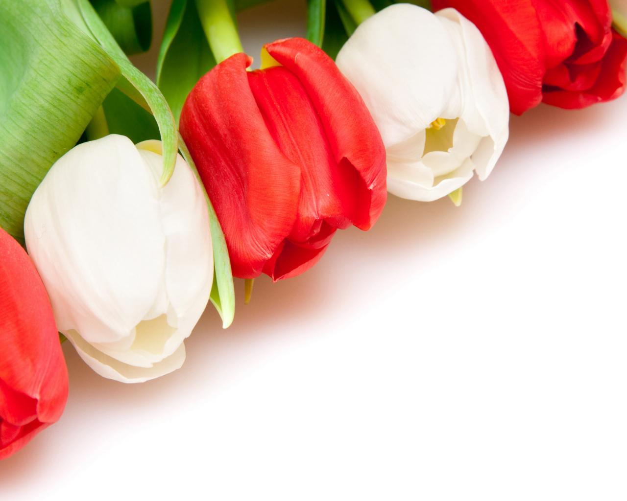 Wallpaper White and red tulips