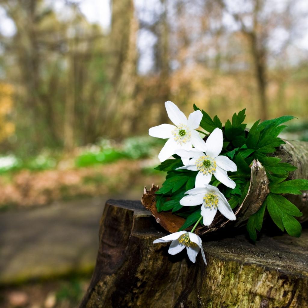 Wallpaper Flowers on a tree stump