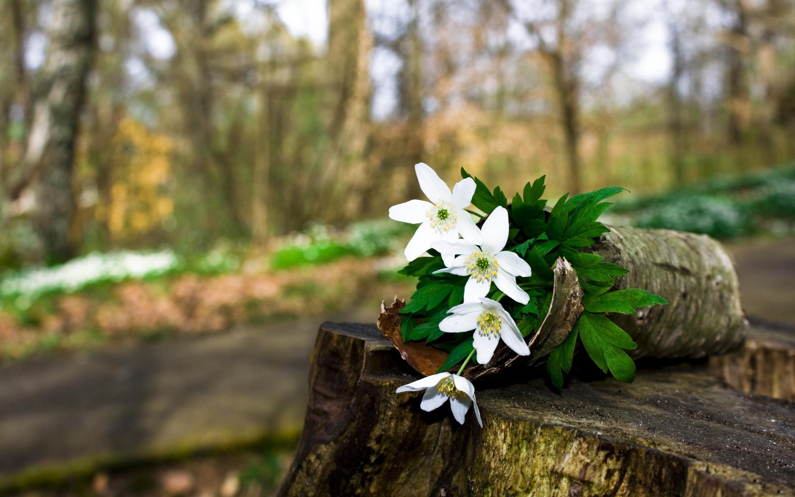 Wallpaper Flowers on a tree stump