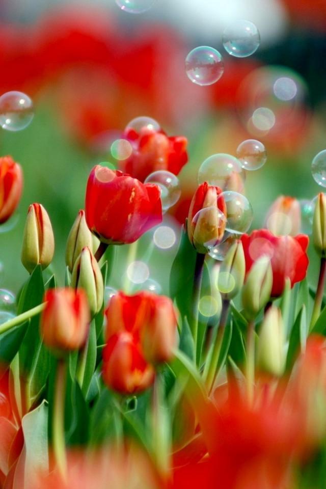 Wallpaper Tulips and Bubbles