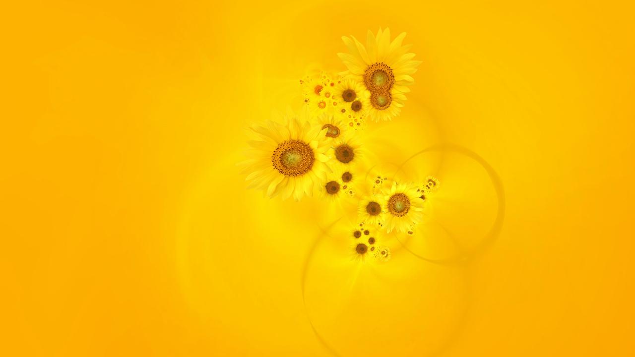 Wallpaper Sunflowers on a yellow background