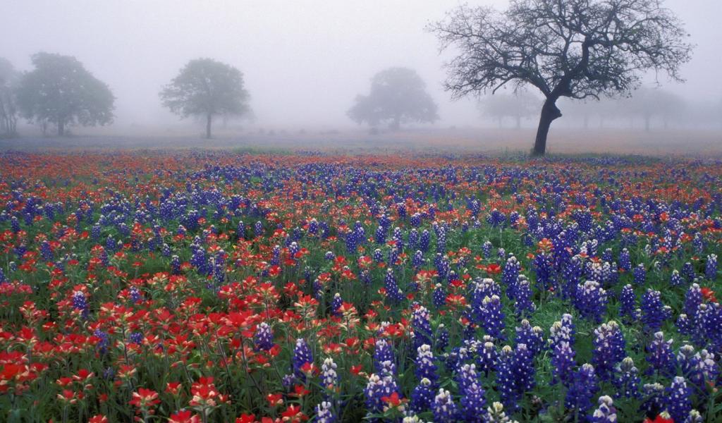 » Wallpaper Field flowers in the fog