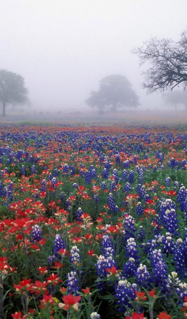 » Wallpaper Field flowers in the fog
