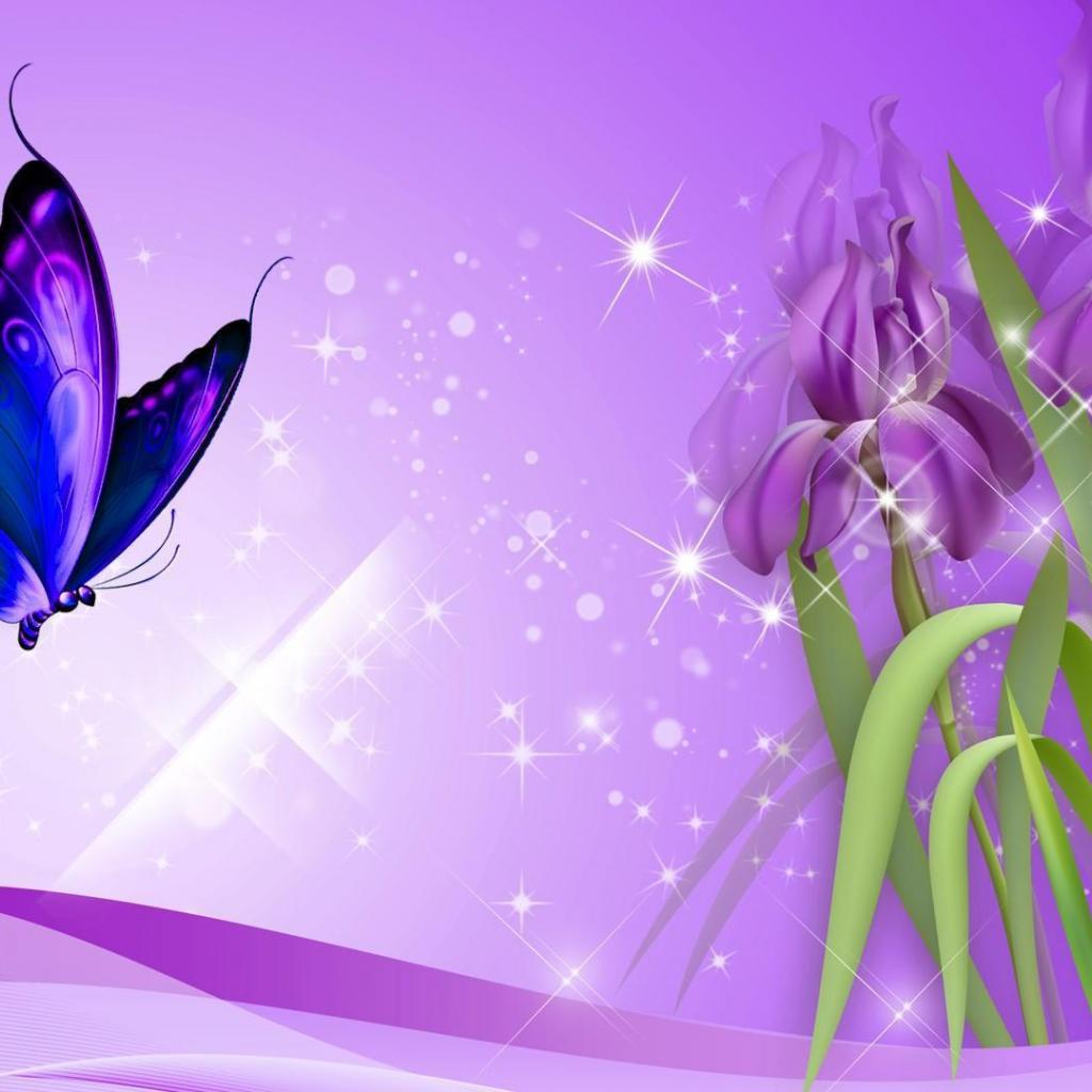 Wallpaper Butterfly on irises