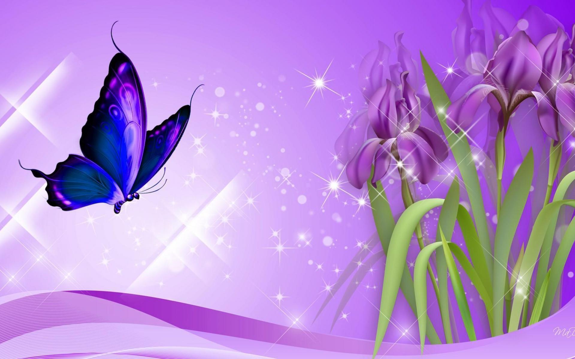 Wallpaper Butterfly on irises