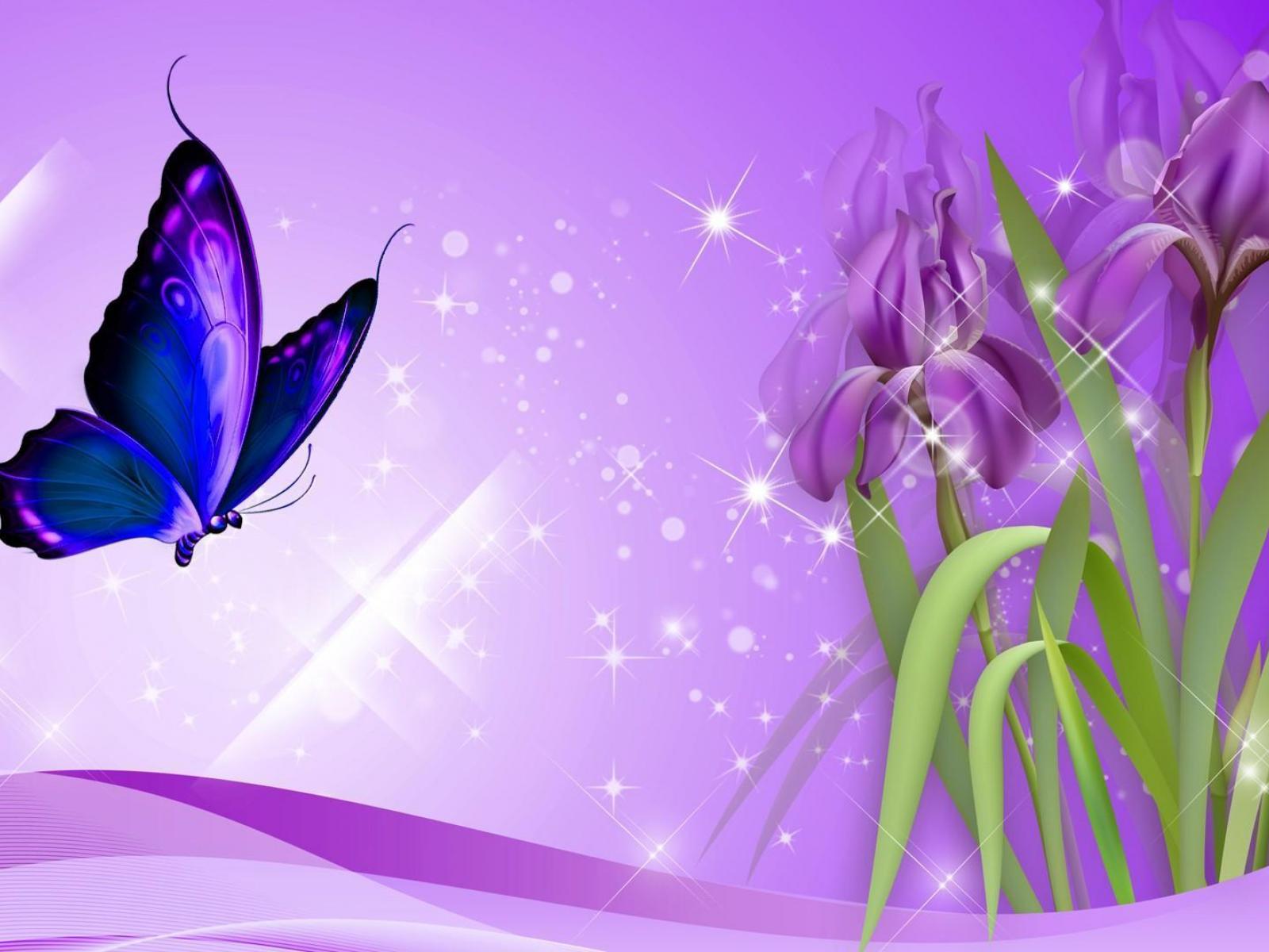 Wallpaper Butterfly on irises