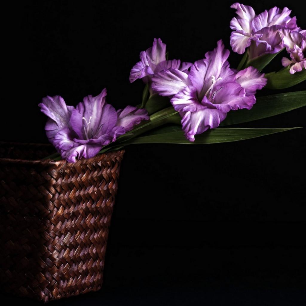 Wallpaper Purple gladiolus in basket