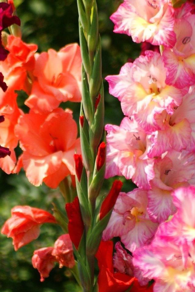 Wallpaper Different varieties of gladiolus in the garden