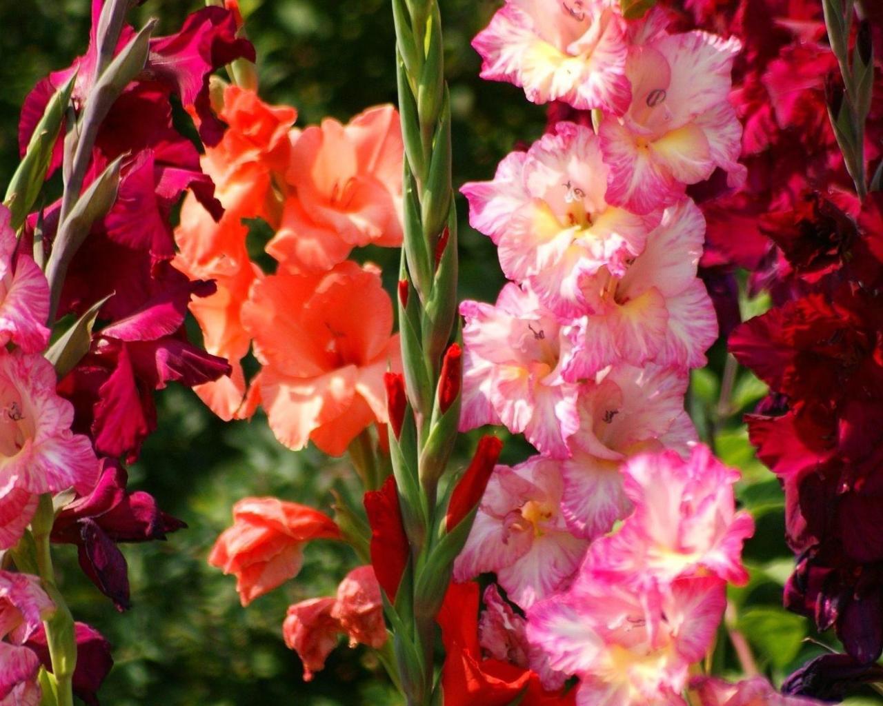 Wallpaper Different varieties of gladiolus in the garden