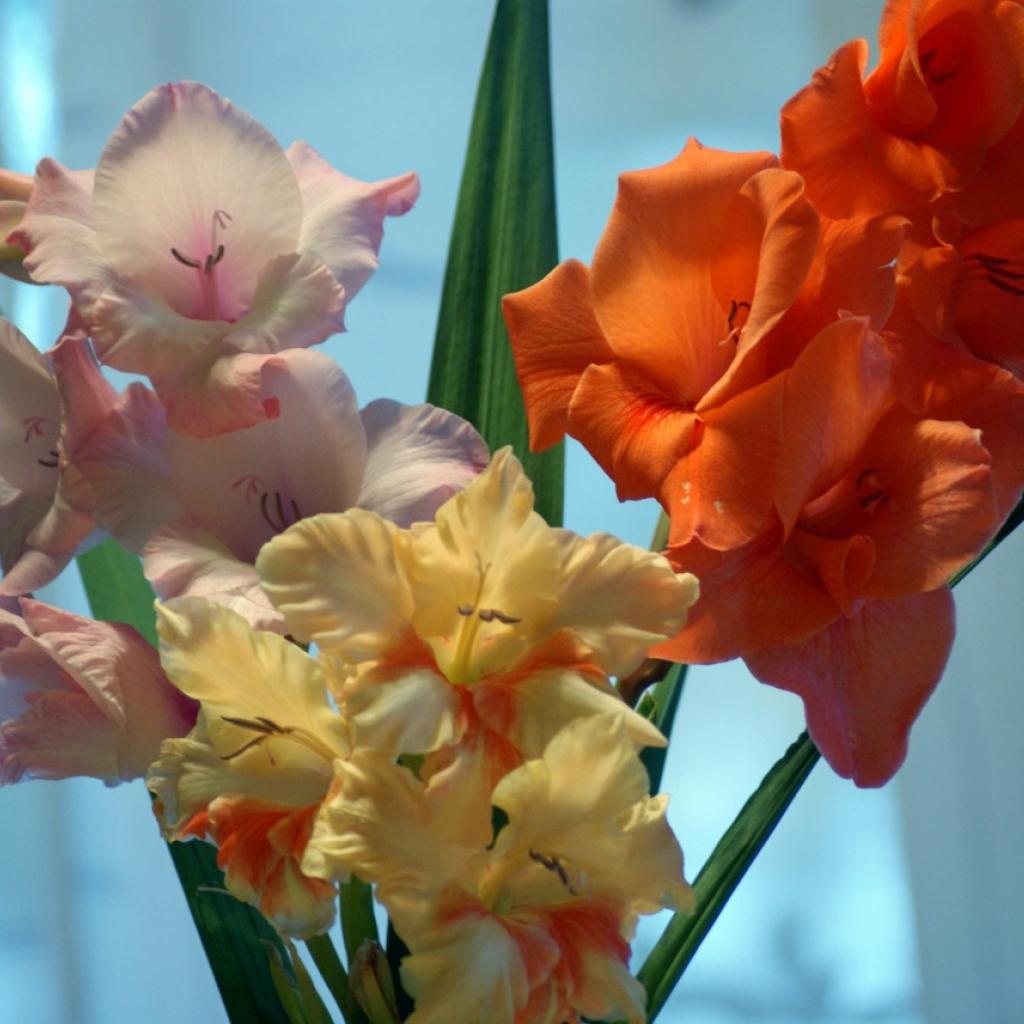 Wallpaper Different varieties of gladiolus flowers