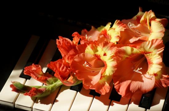 Wallpaper Orange flowers with yellow gladiolus