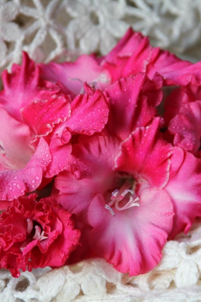 Wallpaper Gorgeous gladiolus on a bed