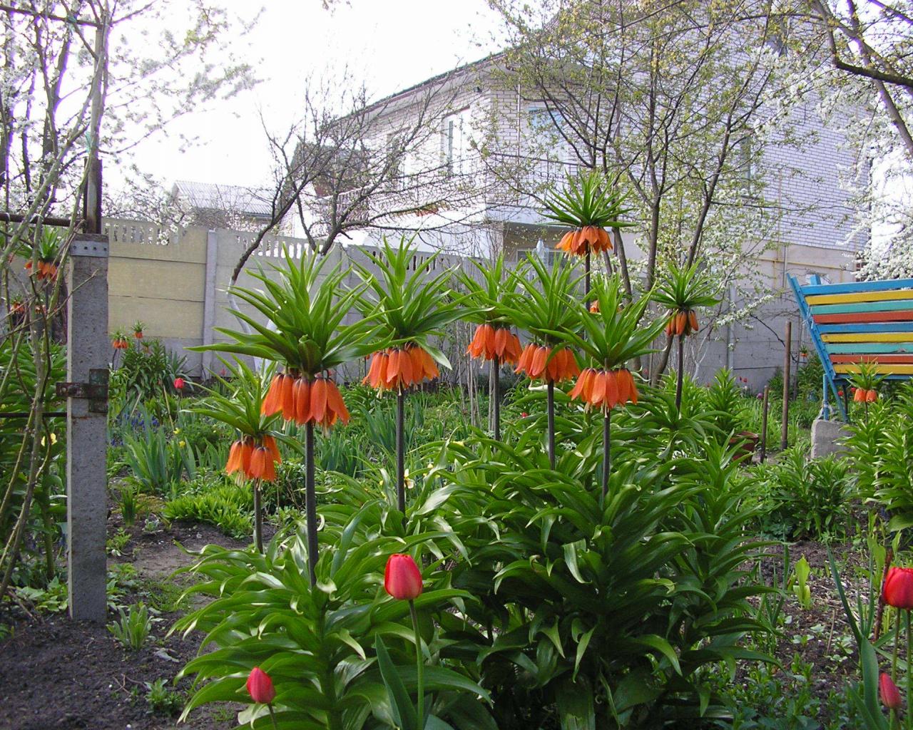 Wallpaper Beautiful flowers in the garden of the imperial fritillary