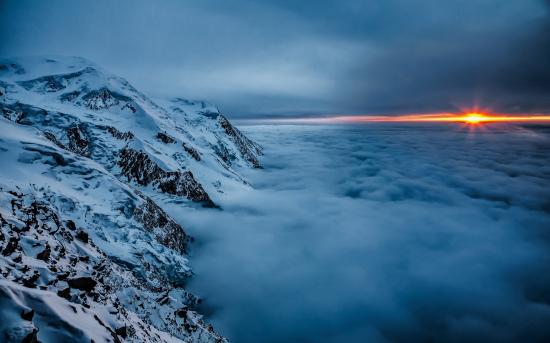 Wallpaper The mountain peaks above the clouds at sunset