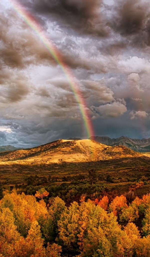 Wallpaper Rainbow over the forest in the mountains