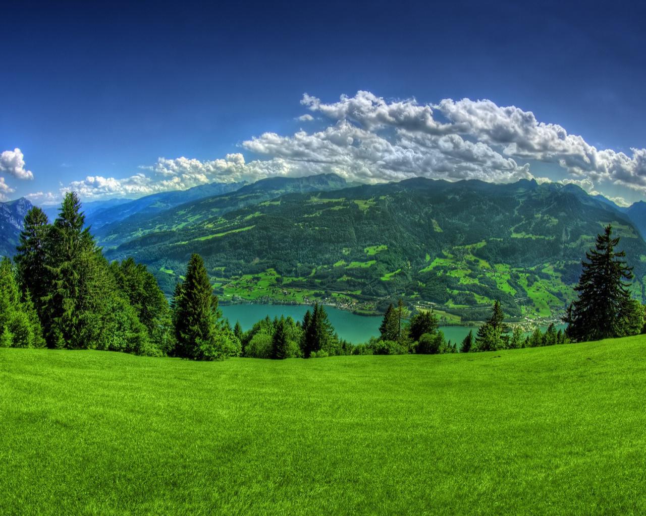 Wallpaper Mountain landscape, picture through a fisheye lens