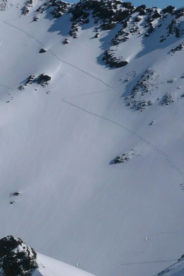 Wallpaper Traces of skiers on a mountain slope