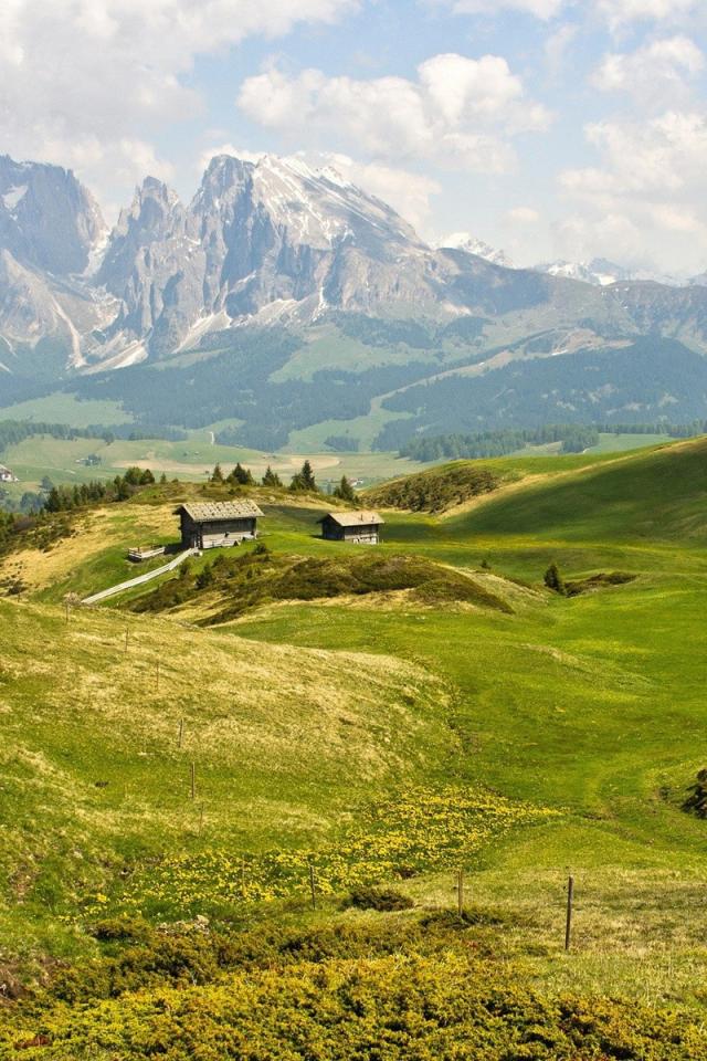 Wallpaper Farm on green fields in the mountains
