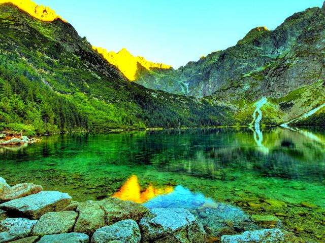 Wallpaper Clear water in the green mountain lake