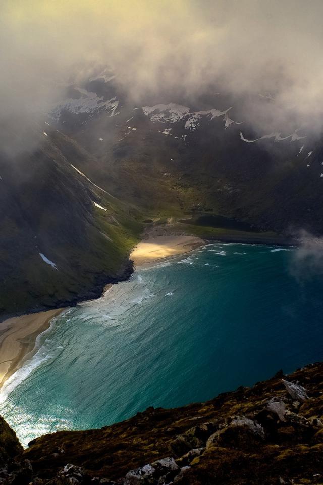 Wallpaper Clouds over the lake in the mountains